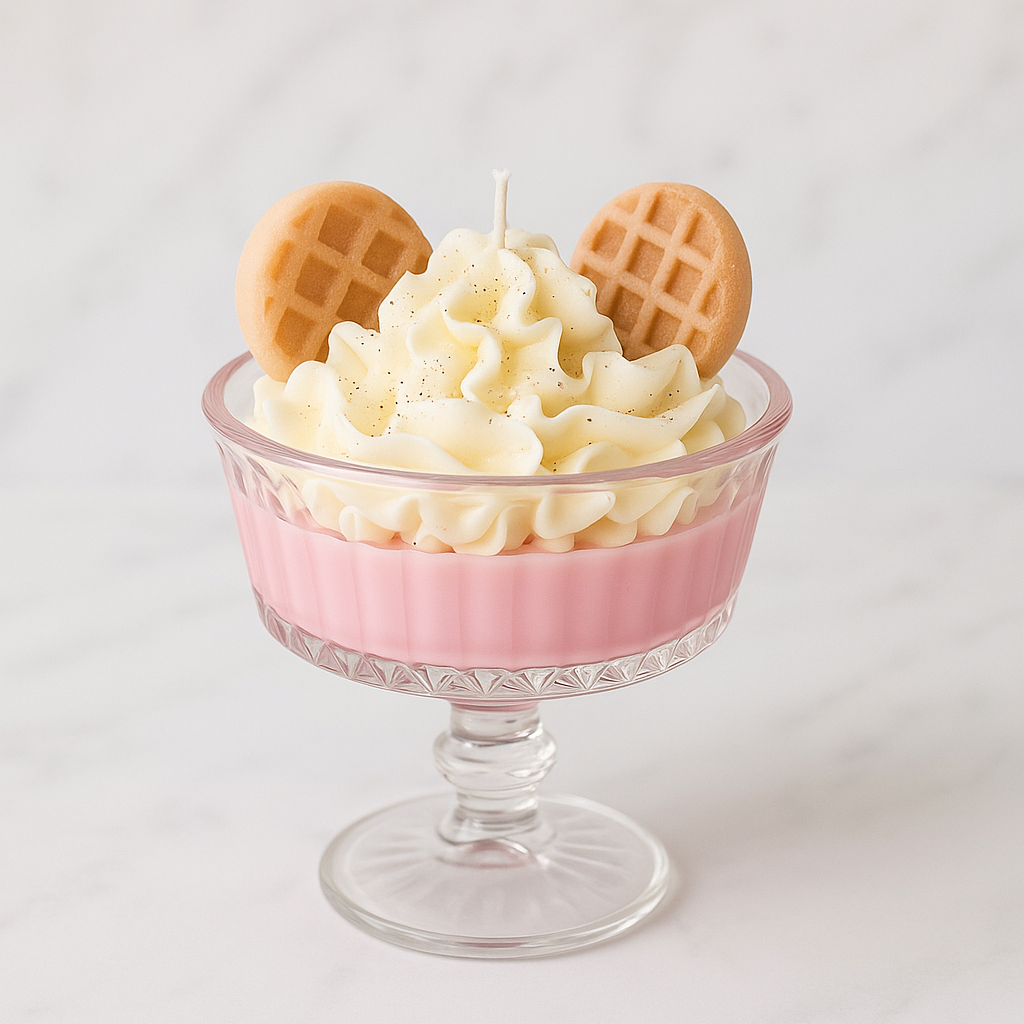 Bougie chantilly artisanale faite main, parfum gourmand et diffusion longue durée — idéale pour une ambiance cosy.