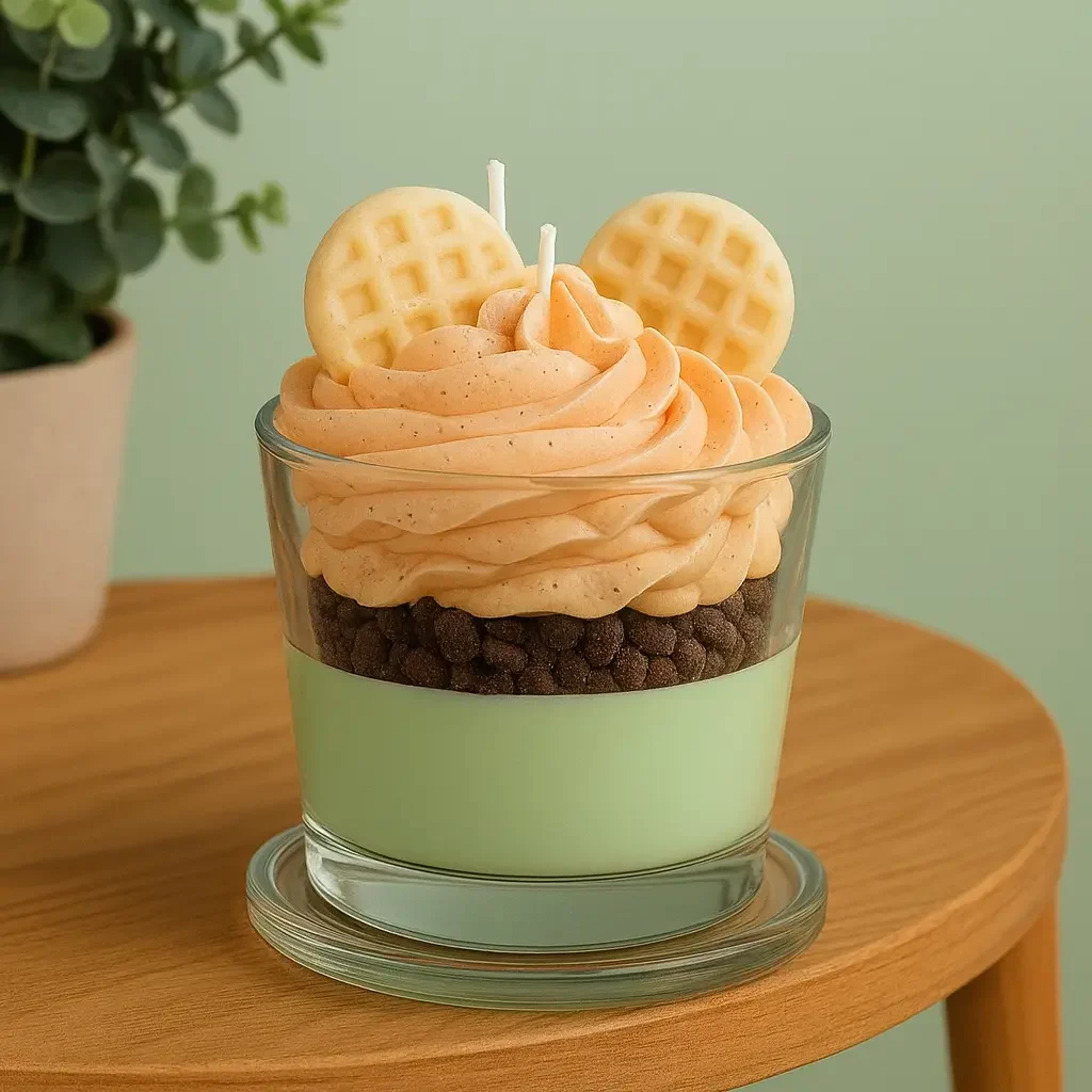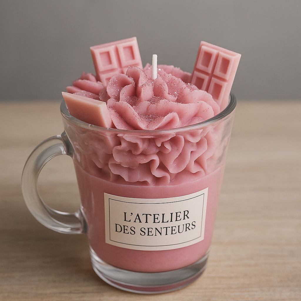 Chaque bougie est une pièce artisanale, fabriquée en cire de soja naturelle et parfumée à Grasse, pensée pour créer une ambiance joyeuse et sucrée lors de vos célébrations.