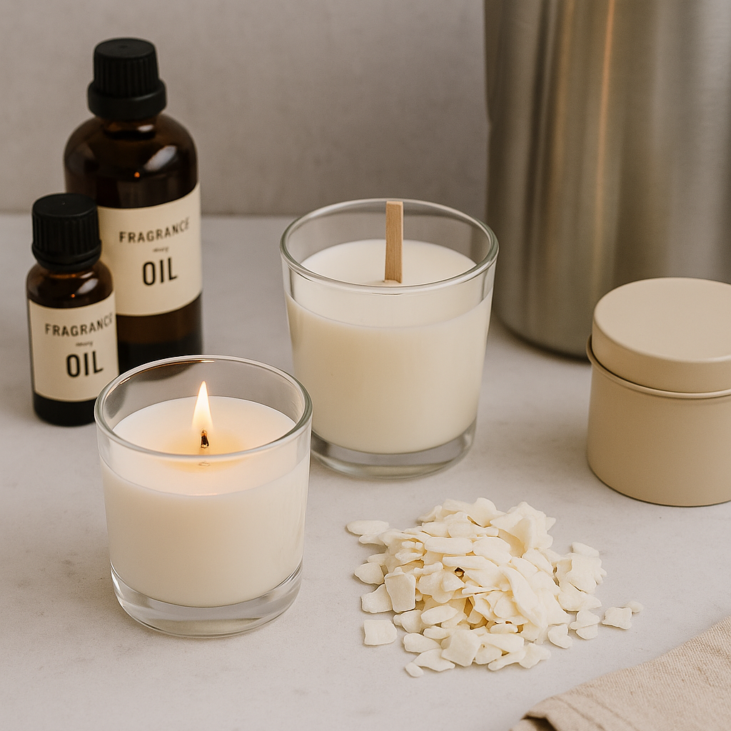 Cire de soja 100 % végétale, sans OGM ni paraffine, pour une combustion propre et durable.